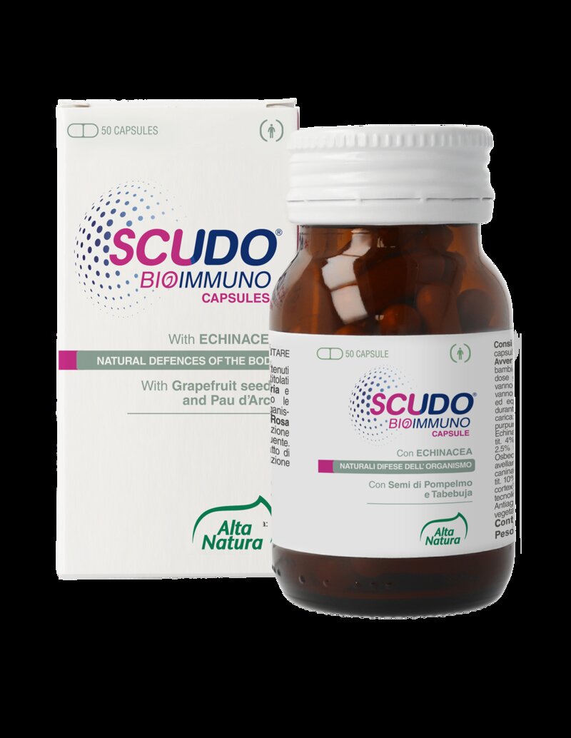 Scudo Bioimmuno Opercoli con i principi attivi contenuti negli estratti secchi e titolati di Echinacea, Uncaria e Tabebuia coadiuvano le naturali difese dell’organismo. La presenza di Rosa Canina favorisce un’azione di sostegno e ricostituente. Con Propoli ed estratto di Pompelmo ad azione antiossidante.